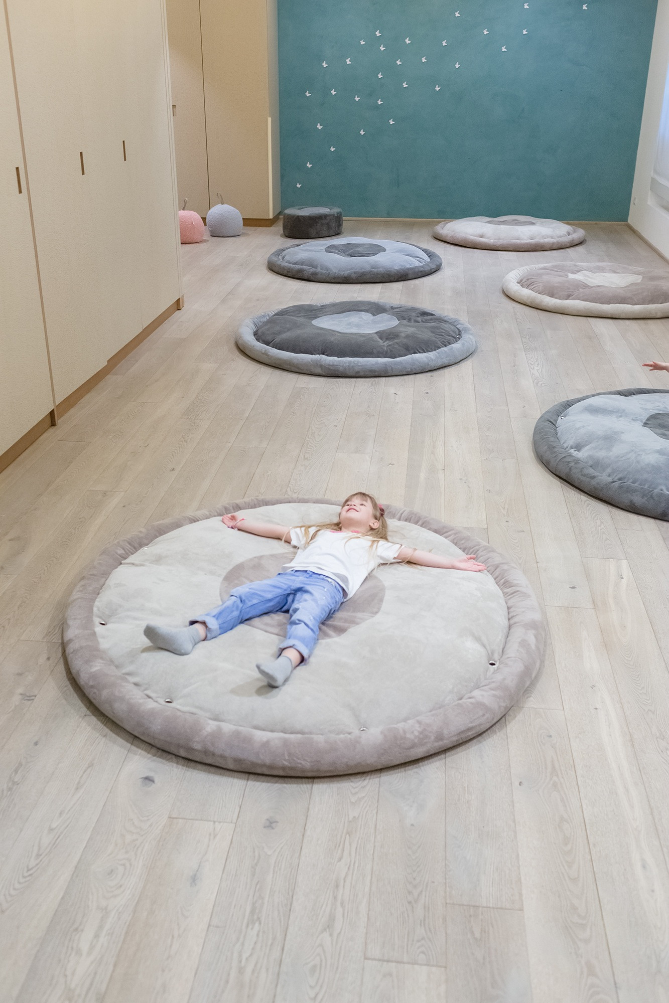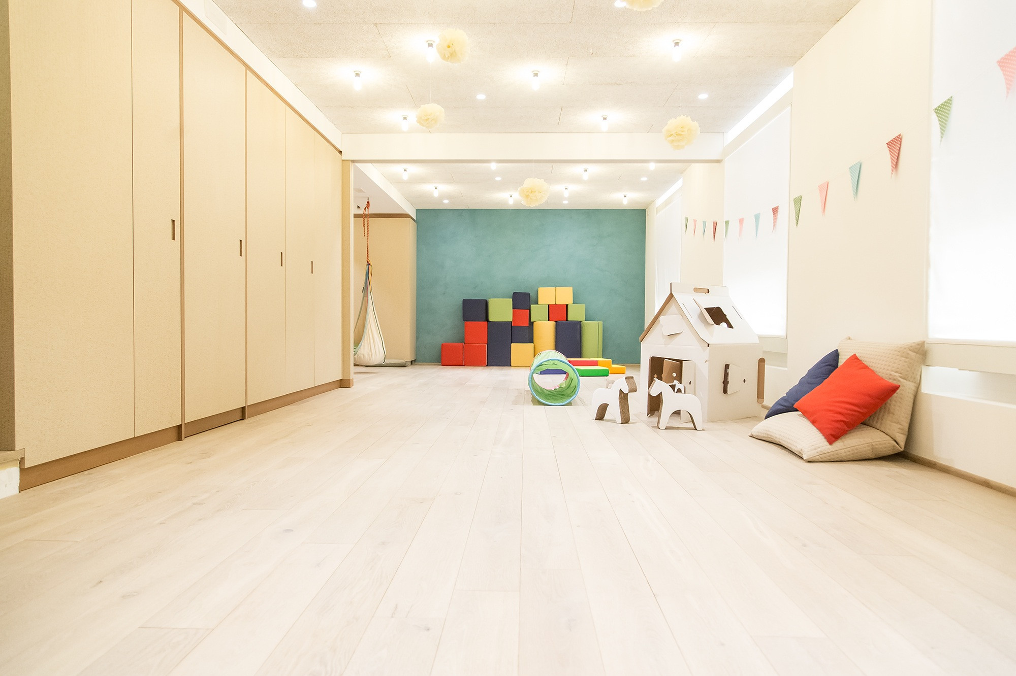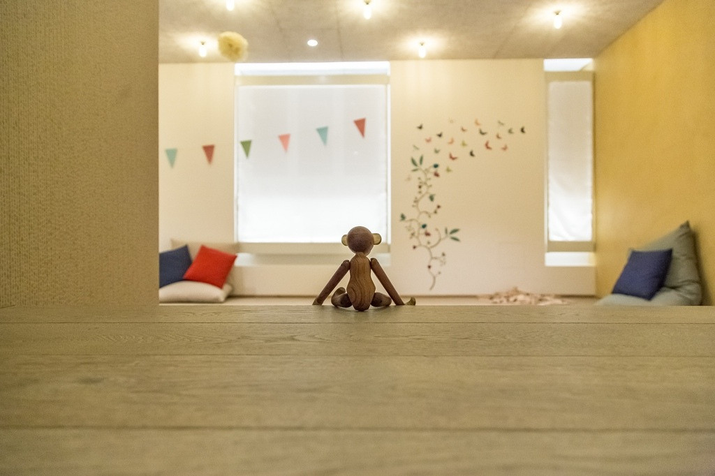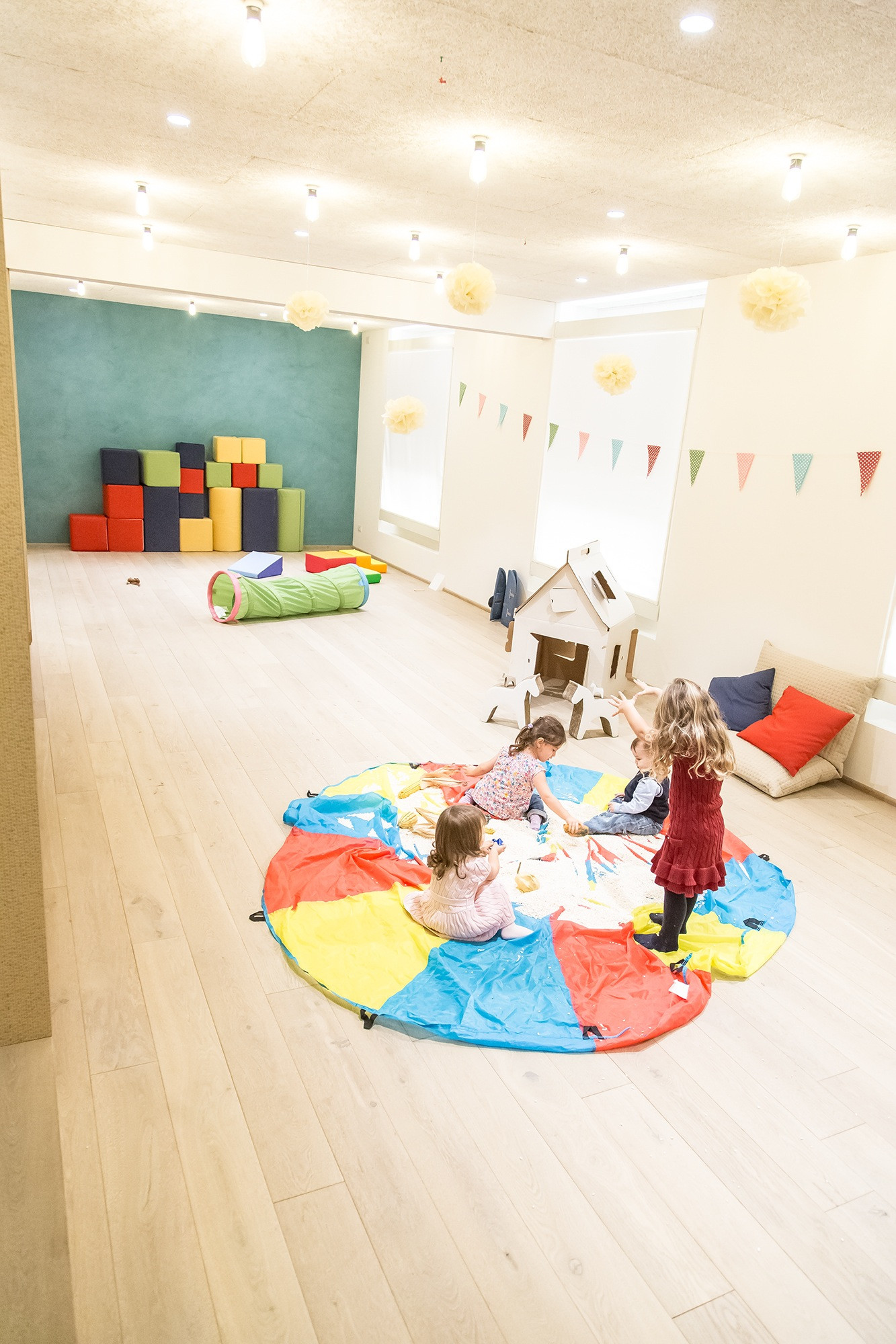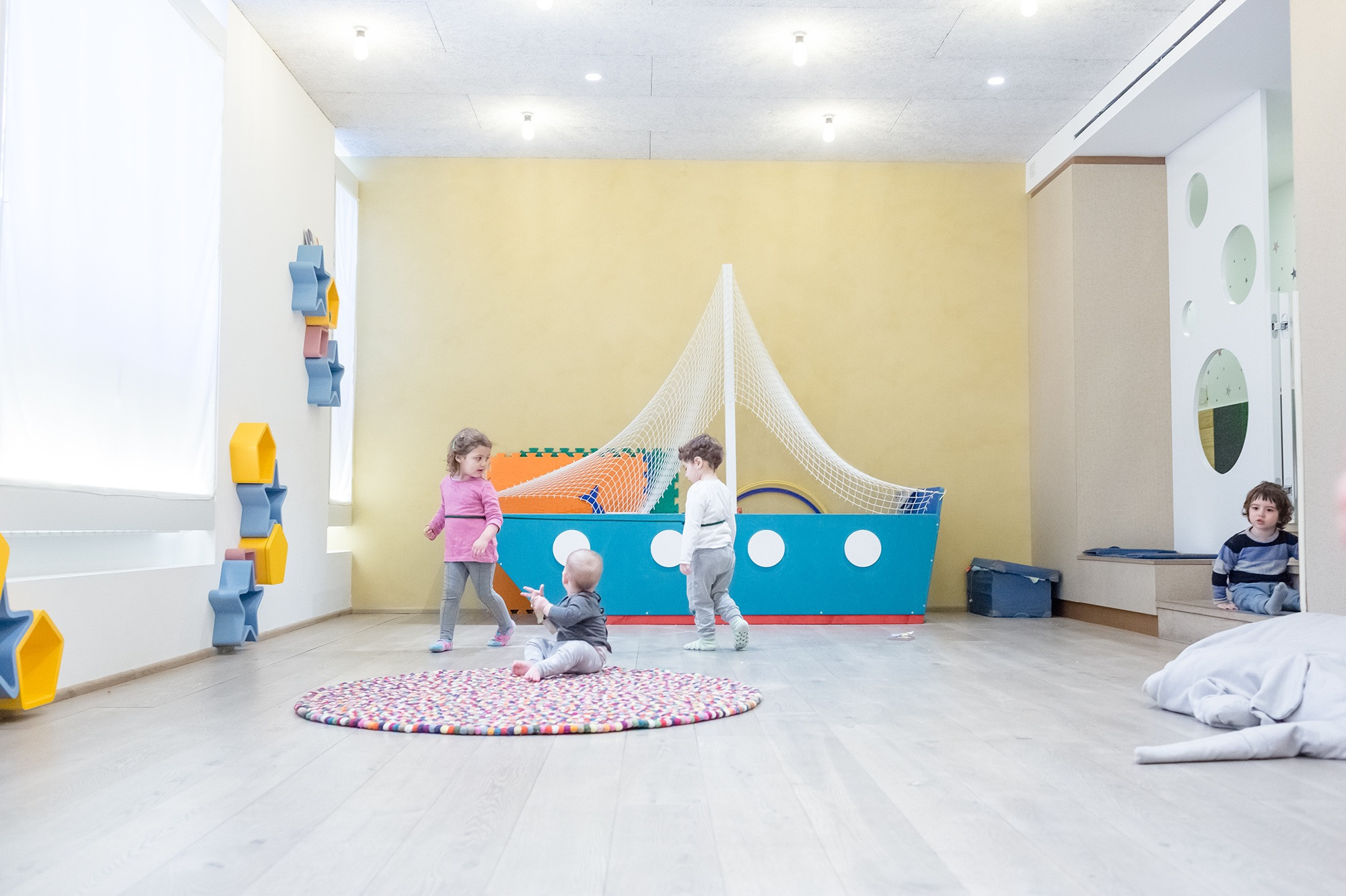 Gli spazi sono appositamente studiati per consentire attività sicure e stimolanti. Tomorò è un contenitore neutro, un guscio di legno avvolgente in cui i protagonisti sono i bambini. E' presente un'ampia sala dedicata allapsicomotricità, con parete d'arrampicata a misura di bambino ed un atelier creativo, volutamente più piccolo e contenitivo dove i bambini possono sperimentare i materiali artistici: dal colore con le mani ed i piedini, alla creta ed i materiali modellabili, ai travasi e bagni sensoriali.